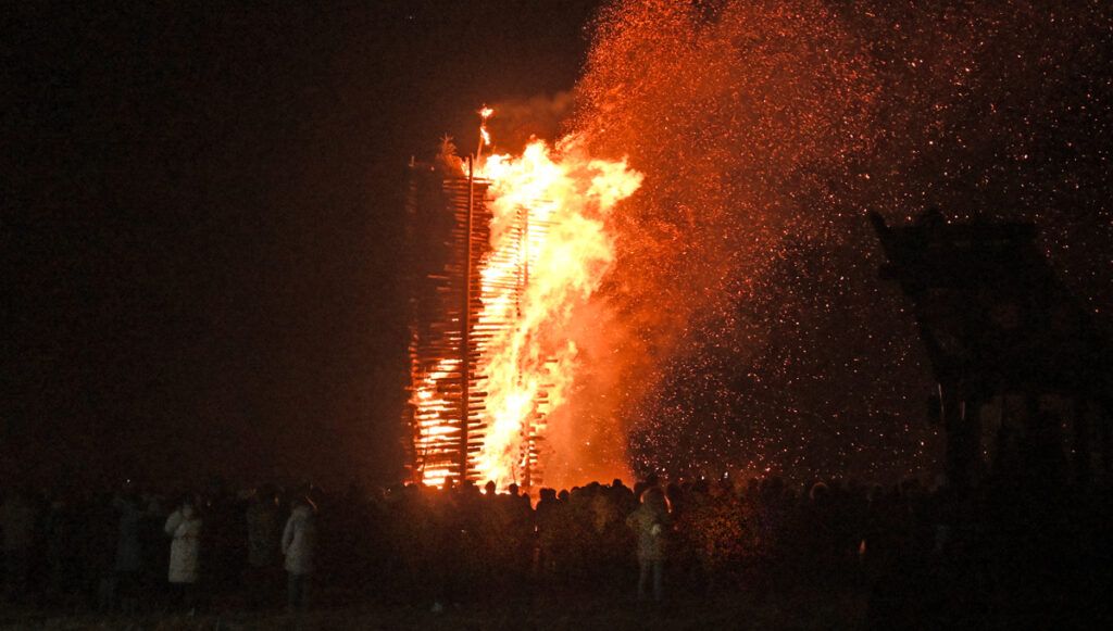 Kümmerazhofen – Der Funken in Kümmerazhofen zog gut und gerne 500 Menschen an – und in seinen Bann. Auflodernde Flammen, fliegende Funken und das in tiefschwarzer Nacht hat immer eine magische Wirkung.