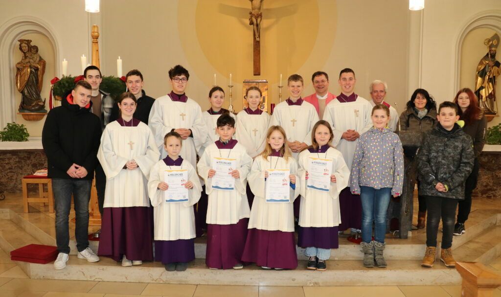 Molpertshaus – Das gibt es auch in der Kirchengemeinde St. Katharina in Molpertshaus nicht in jedem Jahr. Alle vier Erstkommunionkinder im Kirchenjahr 2023 wurden am dritten Advent des Jahres in die mehr als 20-köpfige Ministrantenschar aufgenommen.