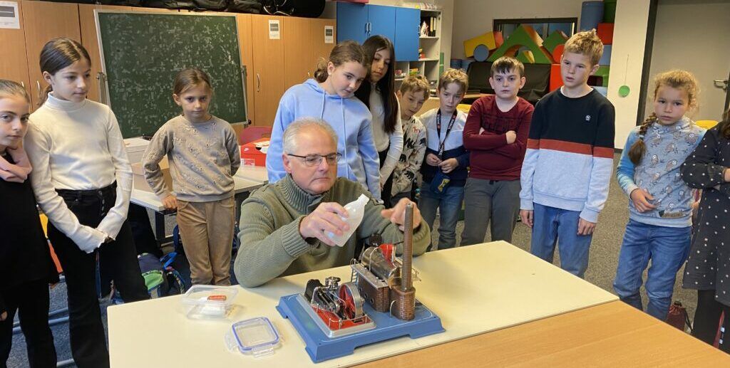 Bad Waldsee – Letzte Woche führte Michael Groh von der Thüga mit allen vierten Klassen einen zweistündigen Workshop zum Thema “Energie” durch. Ganz praktisch mussten die Kinder zuerst einmal Hampelmänner machen, um bewusst menschliche Energie zu erleben.