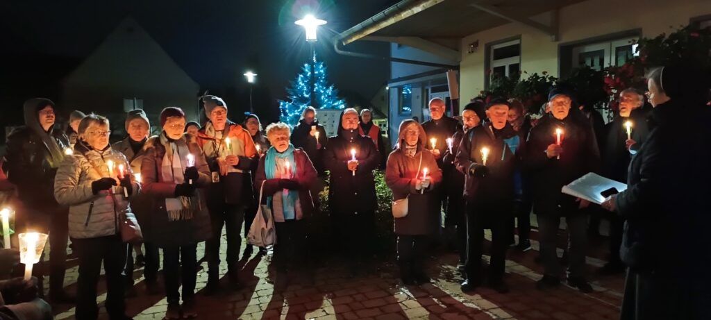 Reute – Bei der Lichterprozession zu Ehren der Guten Beth am Freitagabend (24.11.) fanden sich neben zahlreichen Franziskanerinnen mit Generaloberin Maria Hanna und Klosterpfarrer Ulrich Steck an der Spitze auch Pfarrer Stefan Werner und viele Gläubige aus der gesamten Seelsorgeeinheit ein. Start war bei der neu errichteten Gut-Betha-Stele am Dorfplatz Reute.