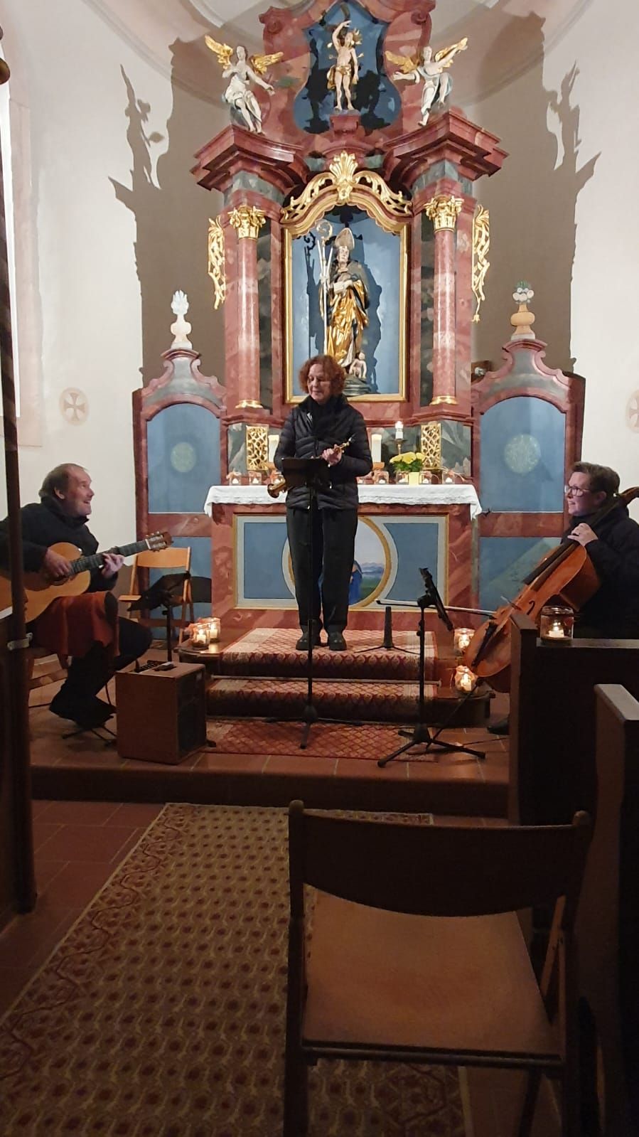 Die Predigt im Gottesdienst hielt die Pastoralreferentin selbst, wobei sie zunächst mit einigen Kindern, die sie schon aus der Erstkommunionvorbereitung kannte, über Sankt Martin sprach. Daran anschließend stellte sie den heiligen Martin, der auch als Patron der Diözese Rottenburg-Stuttgart hoch verehrt wird, als geradezu vorbildlichen, bescheidenen, den Menschen auf Augenhöhe begegnenden Bischof vor, der auch als Bischof noch den Lebensstil des Einsiedlers wählte. Wie Martin “den Glauben in eine Welt getragen hat, die von Unsicherheiten, wie auch heute, geprägt war”, sei ebenso vorbildhaft, wie sein Leben insgesamt, das wohl auch von dem “neuen Gebot” Jesu aus dem Johannesevangelium: “Liebt einander! Wie ich euch geliebt habe, so sollt auch ihr einander lieben” geprägt war.