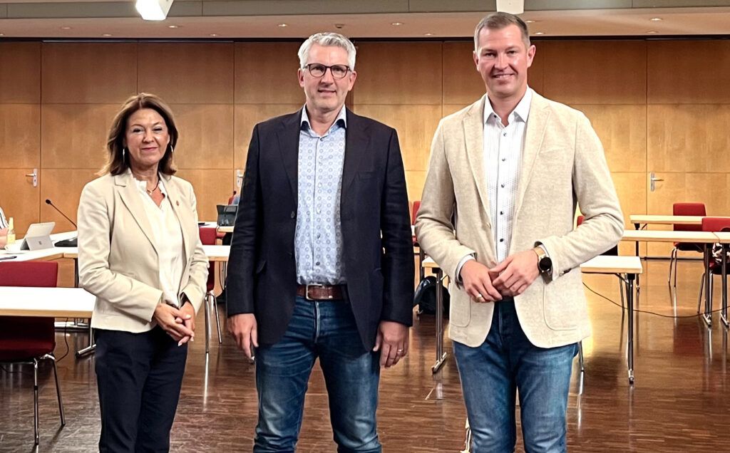Bad Waldsee – Auf Einladung der Kreishandwerkerschaft machten die Minister Dr. Danyal Bayaz und Manfred Lucha am Dienstagvormittag (5.8.) Station bei der Schreinerei Wirth-Bucher, neuerdings ansässig im Gewerbegebiet Wasserstall in Bad Waldsee. Hier nahmen sich die Politiker – Bayaz ist Finanzminister, Lucha Gesundheitsminister – und die Handwerker zwei Stunden Zeit zum Austausch über den aktuellen Zustand im Kreishandwerk.