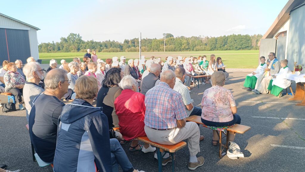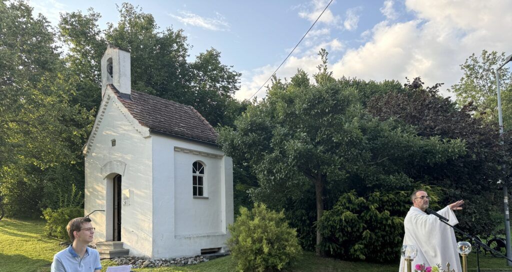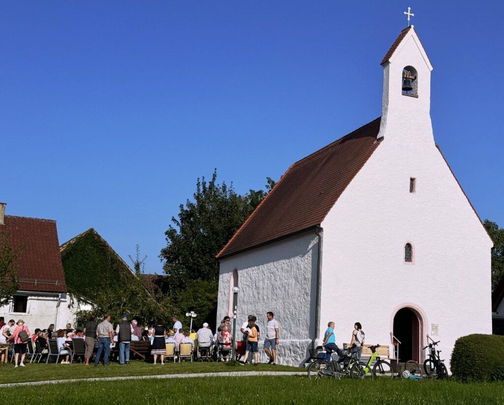 Hittisweiler – Am Tag des Patroziniums „Maria Schnee“ feierte Pfarrer Stefan Werner mit zahlreichen Gläubigen aus der ganzen Seelsorgeeinheit am Sonntagabend (3.8.) in Hittisweiler einen Abendgottesdienst direkt vor der Kapelle „Maria Schnee“.