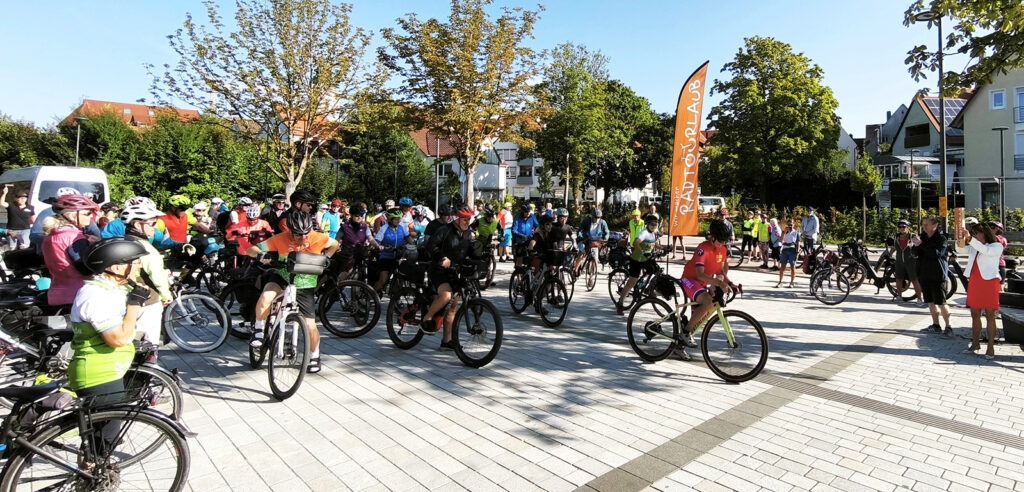 Bad Waldsee – Am vergangenen Wochenende durfte Bad Waldsee Gastgeber für einen ganz besonderen Zwischenstopp sein: Die „Tour de Süden“, ein bundesweites Radtouristikevent, machte mit ca. 91 Radlerinnen und Radlern aus ganz Deutschland Halt in Bad Waldsee. Der Startschuss für die gestrige Etappe (18.8.) fiel um 9.00 Uhr am Grabenmühlplatz – feierlich gegeben von Bürgermeisterin Monika Ludy.