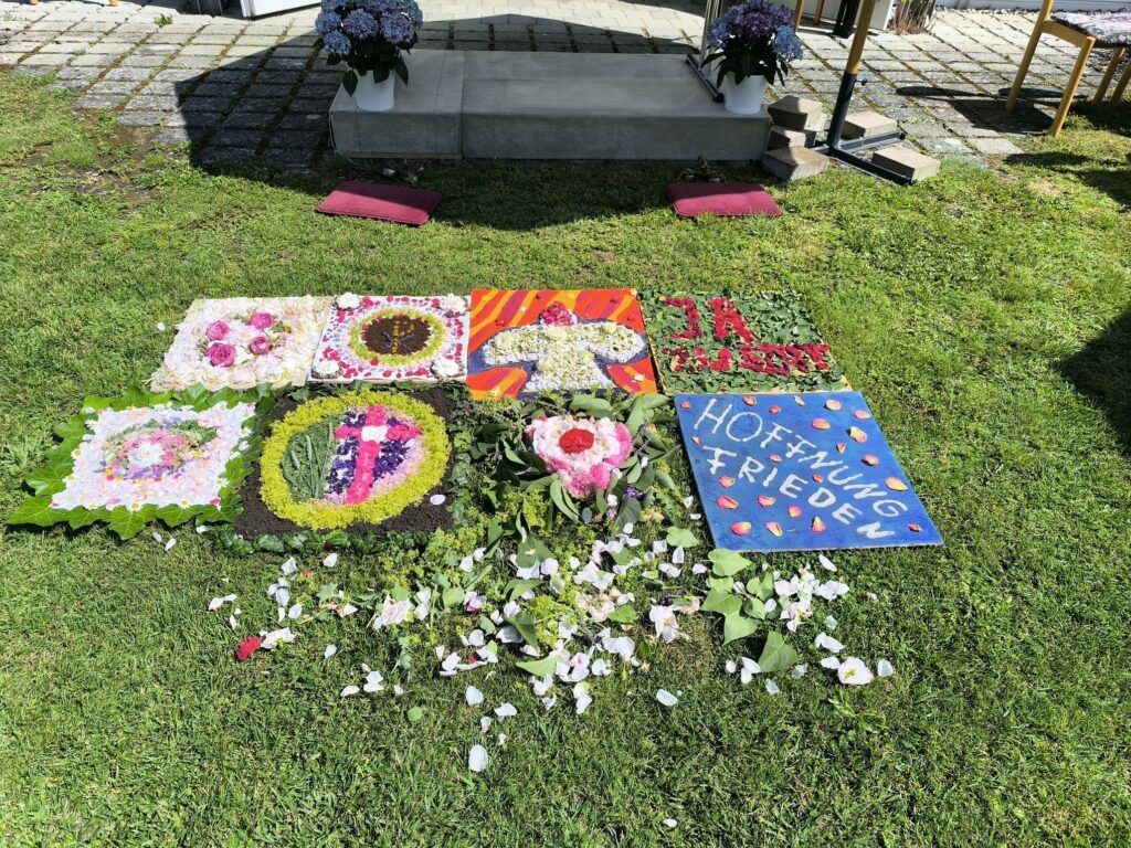 Reute – Der idyllische Pfarrgarten war vorbereitet mit liebevoll gestalteten Blumenteppichen, Bierbänken und einigen Sonnenschirmen. Doch die vorbereiteten Sitzgelegenheiten reichten bei weitem nicht aus für die vielen Gottesdienstbesucher. So wurden kurzerhand sämtliche Stühle aus dem Gemeindesaal ins Freie geschafft, so dass zum feierlichen Einzug der Ministranten und Pater Vogel jeder einen Sitzplatz gefunden haben sollte.
