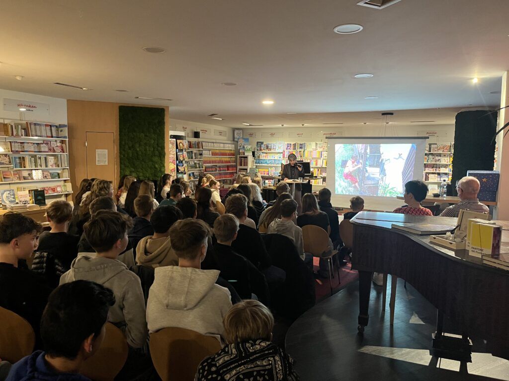 Bad Waldsee – Ein eindrucksvolles Literaturerlebnis hatten die achten Klassen der Eugen-Bolz-Schule. Am Mittwoch, 20. März, gewährte der Jugendbuchautor Dirk Reinhardt spannende Einblicke in die Entstehungsgeschichte seines Romans „Train Kids“ in der Waldseer Stadtbuchhandlung.