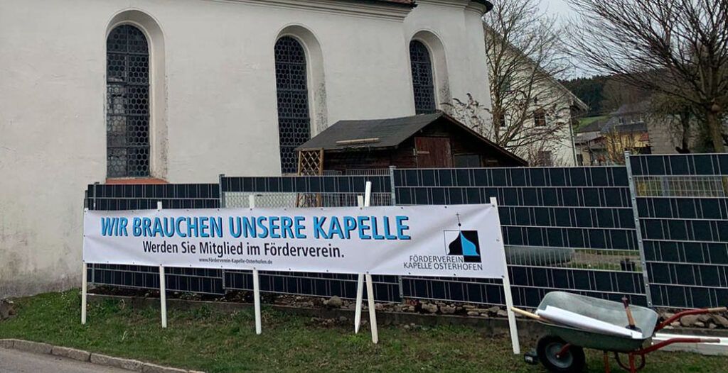 Osterhofen – Über viele Monate hat der Förderverein Kapelle Osterhofen zusammen mit den Verantwortlichen der Großen Kreisstadt Bad Waldsee an den Voraussetzungen für die Sanierung des barocken Gotteshauses gearbeitet. Drei Bereiche waren für das Gelingen des Konzeptes entscheidend, schreibt uns Markus Schmid, der Vorstand Förderverein Kapelle Osterhofen e. V. Nachstehend seine Erläuterungen zum Sachstand sowie die Einladung zur Mitgliederversammlung: