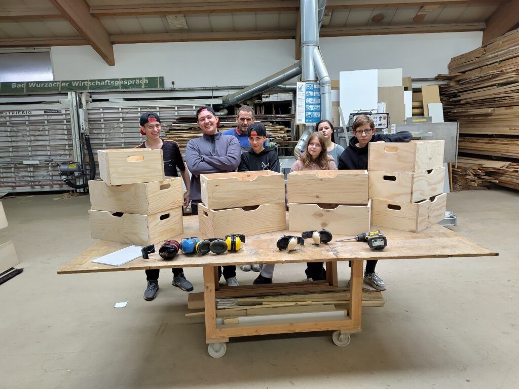 Bad Wurzach – Im Rahmen der Bildungspartnerschaft statteten die Achtklässlerinnen und Achtklässler des SBBZ Lernen Bad Wurzach der Schreinerei Birk einen lehrreichen Besuch ab. Herr Birk nahm sich den gesamten Vormittag Zeit, um den Jugendlichen einen Einblick in den Beruf des Schreiners zu geben.