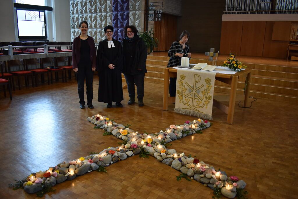 Leutkirch – Es ist schon ein monumentaler Hingucker, das große Kreuz aus unzähligen großen und kleinen Steinen gelegt, mitten in der evangelischen Dreifaltigkeitskirche. Seit mehr als 25 Jahren wird es an Karfreitag gelegt, nur mit Steinen, ohne jeden Schmuck. Manche Gemeindemitglieder erinnern sich an das damalige Sammeln der vielen Steine in einem Steinbruch.