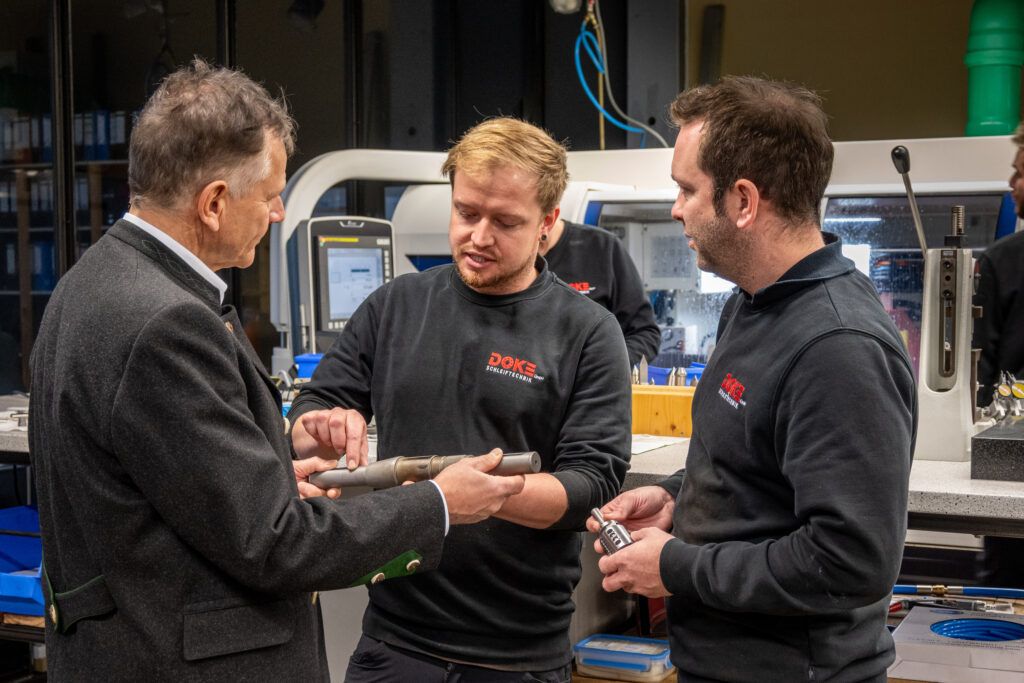 Leutkirch – Kürzlich stattete Oberbürgermeister Hans-Jörg Henle der DOKE GmbH Schleiftechnik aus Leutkirch einen Besuch ab. Das Unternehmen hat ganz aktuell mit dem Bau eines neuen Firmensitzes im Gewerbegebiet Ströhlerweg begonnen.