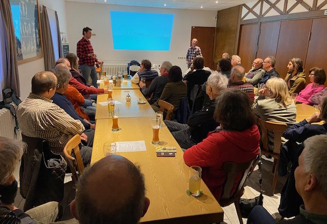 Leutkirch – Behagliche Wärme vom hauseigenen Ofen. Sie deutet auf Gemütlichkeit und Sicherheit. Aber nicht überall. Beim Streit ums „Gebäudeenergiegesetz” von 2023 kam Feinstaub aus Holzöfen ins Gespräch. Das Ganze wurde „zu schwarz und zu weiß gesehen”, sagt Ofenbaumeister Ulrich König von der Ofenmanufaktur Kohler GmbH. Zusammen mit Energieberater Berthold König informierte Ulrich König am Dienstagabend im TSG-Vereinsheim Leutkirch über „sauberes und richtiges Heizen mit Holz”. Eingeladen dazu hatte das Energiebündnis Leutkirch. Das rund 50-köpfige Publikum zeigte sich in einem rappelvollen Vortragsraum.