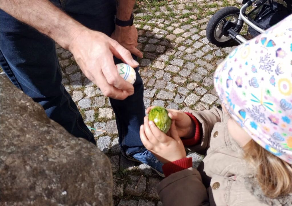 Leutkirch – Der Klöckelmarkt an Ostern hat in Leutkirch eine lange Tradition, die seit Jahrzehnten besonders von den Familien Stör aufrechterhalten wird. Die erste urkundliche Erwähnung war vor 200 Jahren, nämlich genau im Jahr 1824. Klöckeln bedeutet das Aufeinanderklopfen von gekochten Eiern, zum einen mit dem Spitz, zum andern mit dem Kopf. Wessen Ei auf beiden Seiten kaputtgeht, der ist Verlierer und er muss sein Ei an den Gewinner abgeben. Dazu gibt es den Klöckelspruch: „Spitz auf Spitz, Kopf auf Kopf, wer nicht klöckelt, ist ein Tropf” (Tropf bedeutet: ist ein unguter Nichtmitmacher).