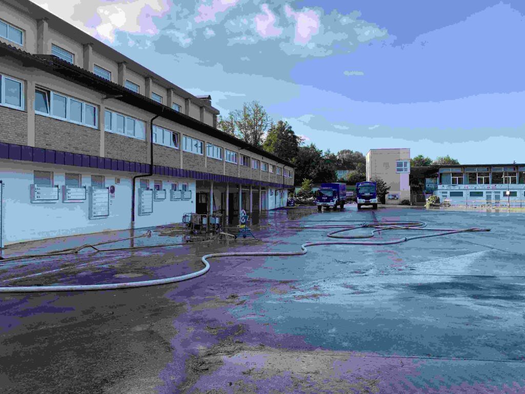 Meckenbeuren – Stand: 5. Juni, 8.00 Uhr – In der Gemeinde Meckenbeuren sind die Aufräumarbeiten in vollem Gang. Der Schulhof der Grundschule in Meckenbeuren-Kehlen wurde leergepumpt und gereinigt. Der Schulbetrieb beginnt voraussichtlich am Donnerstag.