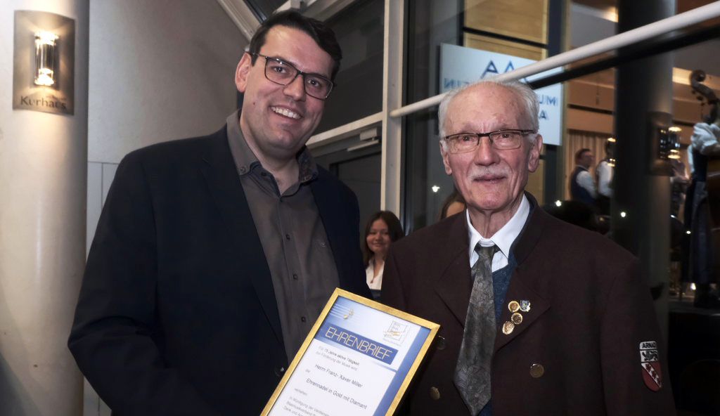 Bad Wurzach – Beim diesjährigen Frühjahrskonzert des Musikvereins Arnach – traditionell am Palmsonntag im Kurhaus – wurde Franz-Xaver Miller, genannt Xare, für 75 Jahre als aktiver Musiker geehrt.