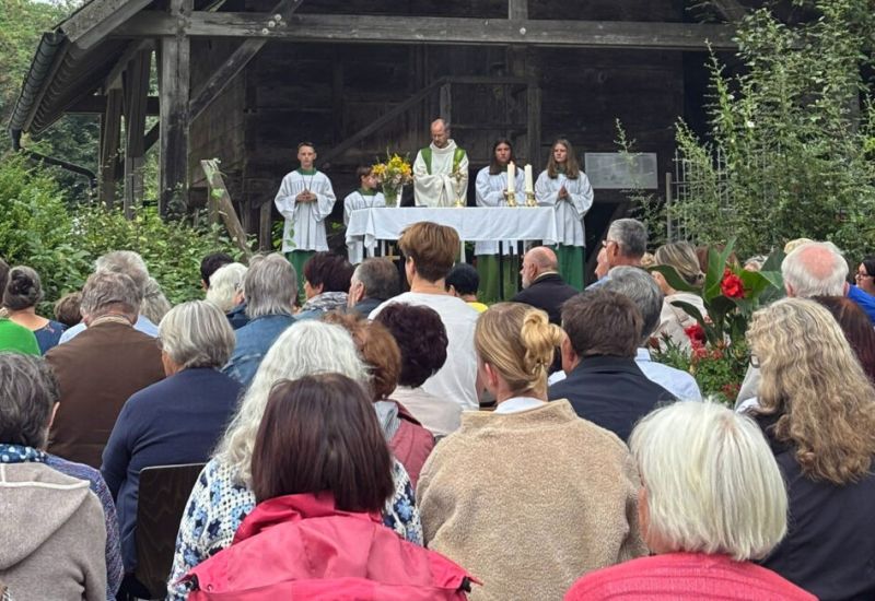 Willerazhofen – Die Stühle reichten nicht aus, es mussten noch Bierbänke rangeschafft werden, so viele Gäste kamen zum Open-Air-Gottesdienst zum Altar im Kornspeicher neben der Kirche in Willerazhofen. Es ist ein wunderschöner Dorfplatz unter vier Linden, dazu Musik vom Bläserensemble “Verstehen Sie Brass” und Pianoklänge von Ingrid Menig, fast allesamt vom Ort oder von der Nähe. Pfarrer Wolfgang Metz aus Heggelbach, im Heimaturlaub oft und gerne im kirchlichen Dienst tätig, hielt den Gottesd…