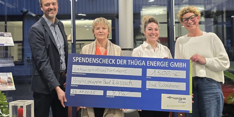 Bad Waldsee / Bad Wurzach – ie Thüga Energie engagiert sich in diesem Jahr mit einer Weihnachtsspende für die Hospizgruppe Bad Wurzach und würdigt damit deren bedeutende Arbeit für die Region. Der Beitrag wird vor allem für die Ausbildung weiterer Trauerbegleiter eingesetzt, die Menschen und Familien in schweren Lebensphasen zur Seite stehen.