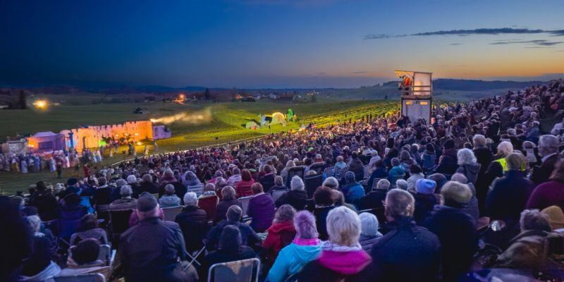 Engerazhofen, das kleine Pfarrdorf im württembergischen Allgäu, hat mit seinen Passionsspielen wieder Großartiges geleistet. 350 Mitwirkende bei vielleicht 600 Einwohnern in und um den Ort – diesen Mobilisierungsfaktor schafft nicht mal Oberammergau.
