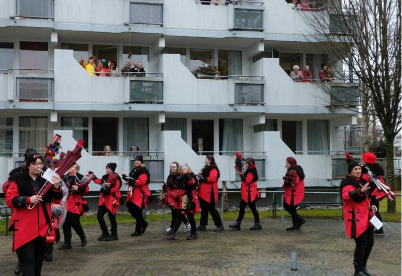 Aulendorf – Am Gumpigen Donnerstag hatte der Musikverein „Schussentäler Schalmeien“ viel zu tun: Die 25 Musikerinnen und Musiker waren bei der Schülerbefreiung, beim Narrenbaum-Stellen und beim Umzug dabei. Dazwischen haben sie sich noch Zeit genommen für den Wohnpark St. Vinzenz.