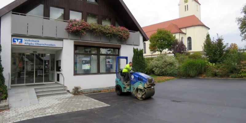 Arnach – Der Platz vor der Arnacher Filiale der Volksbank Allgäu-Oberschwaben (VBAO) hat eine zentrale Funktion: Er dient nicht nur den Kunden der Bank zum Parken ihrer Fahrzeuge, sondern wird genauso auch von Kunden des benachbarten Dorfmarkts frequentiert. Anfang Oktober wurde er von der Eigentümerin, der VBAO, saniert und neu asphaltiert.