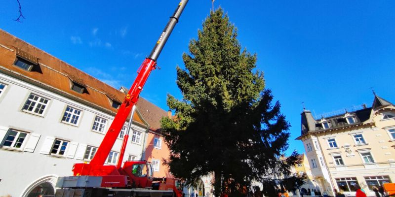 Der Weihnachtsbaum auf dem Marktplatz ist aufgestellt