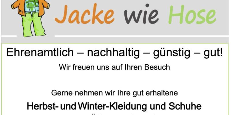Bad Wurzach (rei) – Der Kleiderladen „Jacke wie Hose” im Breiteweg 15 in Bad Wurzach bietet gute Secondhand-Mode zu günstigen Preisen an.