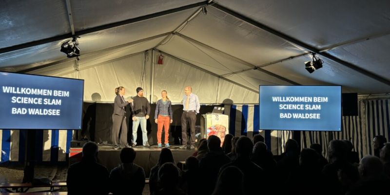 Bad Waldsee – Die Premiere ist gelungen, auch wenn bei ergiebigem Dauerregen nur gut sechzig Besucher den Weg ins „Bildungszelt“ auf der Bleiche zum ersten Science Slam in der Großen Kreisstadt gefunden hatten.