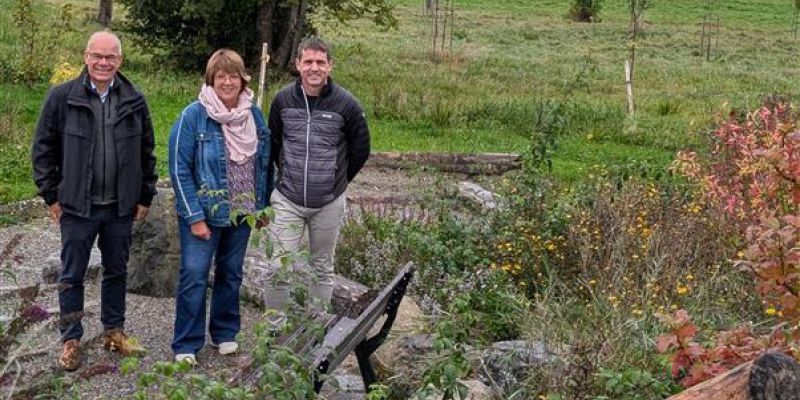 Ratzenried – Am 30. September wurde am Ortsrand von Ratzenried das „Mustergärtle“ offiziell eröffnet. Argenbühls Bürgermeister Roland Sauter, Silvia Ulrich, Vorstandsmitglied der Regionalentwicklung Württembergisches Allgäu e.V., und Geschäftsführer Bernd Kaufmann nahmen an der Eröffnung teil.