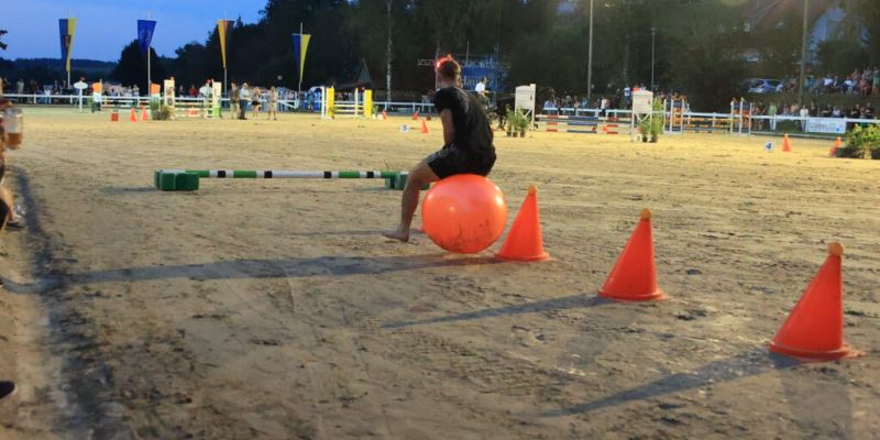 Hauerz – Nicht nur Pferde haben die Hufe geschwungen am Showabend in Hauerz auf dem Reitgelände. Zweibeiner sind genauso gefordert werden. Es galt nämlich zu hüpfen, gegen ein Bungee-Seil anzurennen und Tennisbälle sammeln und, man beachte, unter einer Hindernisstange durchzuspringen. Darunter war der Wassergraben, der sonst eine Erschwernis für Springpferde ist. Nachstehend Eindrücke unseres Reporters Hans Reichert, der viele Bilder “geschossen” hat (siehe Galerie). Ergebnisse vom Samstagab…
