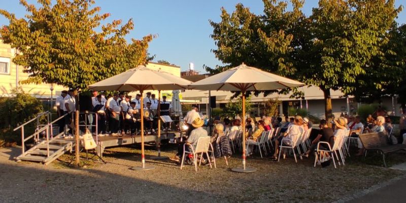 Aulendorf/Weingarten – Am 28. August gastierte der Marinechor Aulendorf bei der evangelischen Kirchengemeinde Weingarten. Bei strahlendem Sonnenschein und hochsommerlichen Temperaturen waren die Sitzplätze im Innenhof des Ladenzentrums im Nu belegt. Wer einen Sitzplatz im Schatten der Bäume ergattert hatte, konnte sich glücklich schätzen.