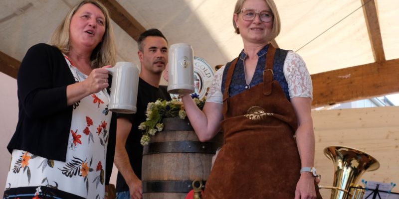 Christiane Vincon-Westermayer beim Fassanstich: Mit zwei Schlägen war’s getan