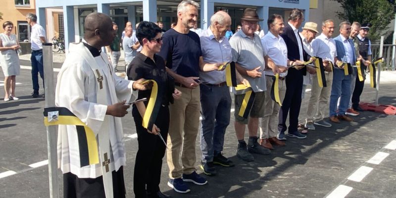Leutkirch – Viel Sonnenlicht leuchtete und viel politische Prominenz aus Leutkirch und drüber raus strahlte. Am Freitagvormittag kurz vor 11.00 Uhr schnappten etliche Scheren zu, um das symbolische Sperrband auf der Mohrenbrücke zu zerschneiden. Weihwassertropfen des kirchlichen Segens kurz davor hatten so manch wichtigem Besuch etwas Kühlung vor der sengenden Hitze verschafft.