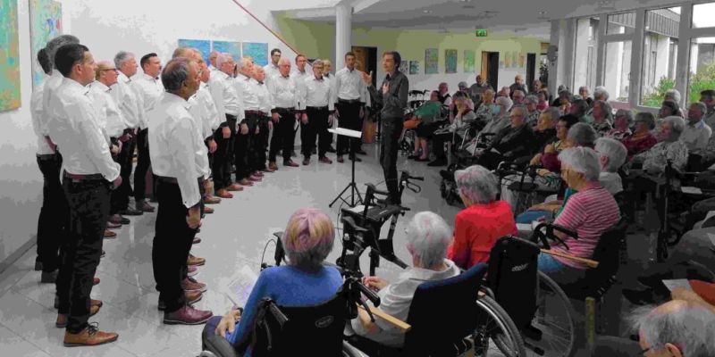Bad Waldsee – Viel Freude haben die Sänger des Männerchors Haisterkirch ihrem Publikum im voll besetzten Foyer des Wohnparks am Schloss mit einem schwung- und gefühlvollen Serenaden-Konzert gemacht. Bewohnerinnen und Bewohner, Mitarbeitende und Gäste lauschten und applaudierten begeistert und sangen kräftig mit.