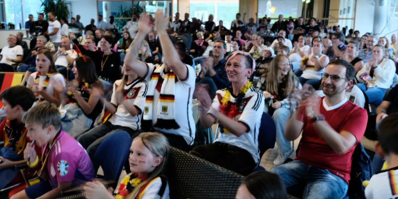 Friedlich feiernde Fans nach Auftaktsieg der deutschen Nationalmannschaft
