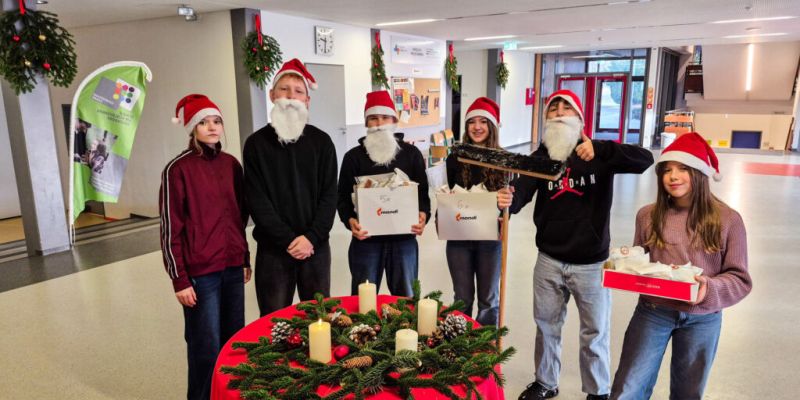 Aulendorf – Zwar ein bisschen später als gewohnt, aber dafür mit ganz viel Weihnachtszauber im Gepäck: Am 9. Dezember machten sich die SMV-Nikoläuse und ihre fleißigen Weihnachtswichtel – Lilli, Moritz, Liana, Fabiana, Max, Luis, Zoe und Mateo – auf den Weg zu den Klassen 5 und 6.