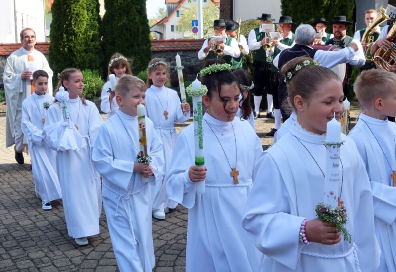 Haisterkirch – Am Sonntag (14. April) feierten zehn Kinder der Kirchengemeinde St. Johannes Baptist Haisterkirch ihre Erstkommunion im gewohnt großen Rahmen.