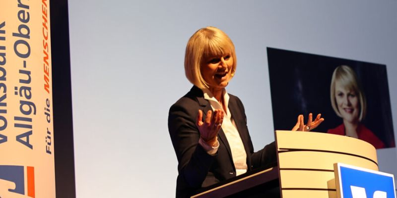 Leutkirch – Gundula Gause begeisterte die Besucher des VBAO-Mitgliederforums am vergangenen Mittwochabend (10.4.) in der Festhalle Leutkirch. 450 Mitglieder der Volksbank Allgäu-Oberschwaben hingen wie gebannt an ihren Lippen.