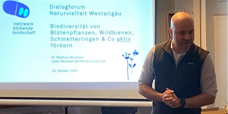 Eisenbach – „Das Thema Biodiversität kann man gar nicht hoch genug hängen.“ So Dr. Matthias Wucherer vom „Netzwerk blühende Landschaft” am 16. Oktober im Haus Tanne in Isny-Eisenbach. Der Einladung von „Naturvielfalt Westallgäu” waren dorthin rund 50 Leute gefolgt, um „Vielfalt erleben und schmecken” zu können. Bildschirmzeitung-Reporter Julian Aicher hörte sich Wucherers Vortrag an.