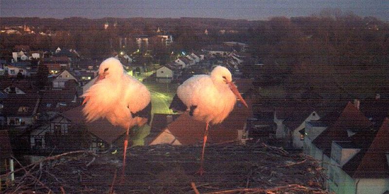 Bad Waldsee – Seit 30. Januar sind die Störche Siegfried und Sieglinde wieder auf dem Steinacher Brauereikamin. Nun zum 13. Mal. Die beiden waren nicht in den Süden geflogen, sondern hatten in Oberschwaben überwintert.