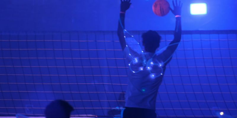 Leuchtende Netze, Linien und Bälle in der Riedsporthalle