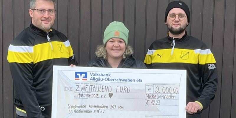 Michelwinnaden – Beim Bad Waldseer Adventsglühen vom 7. bis 10. Dezember haben die Fußballer des SC Michelwinnaden eine von Vanessa und Hubert Oberhofer initiierte Spendensammelaktion zu Gunsten des Mukoviszidose e.V. an ihrem Verkaufsstand auf dem Weihnachtsmarkt durchgeführt.