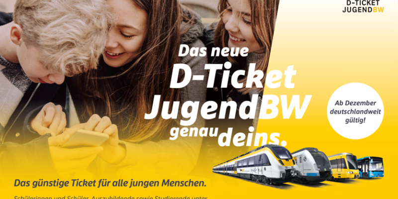 Region – 1 Euro pro Tag: Mehr kostet das Jugendticket nicht. Für 365 Euro im Jahr können junge Menschen dann in ganz Deutschland mit Bus und Bahn fahren. Das D-Ticket JugendBW löst am 1. Dezember das JugendticketBW ab. Bis zum Start gilt das JugendticketBW weiter. Danach wird es automatisch ausgetauscht.