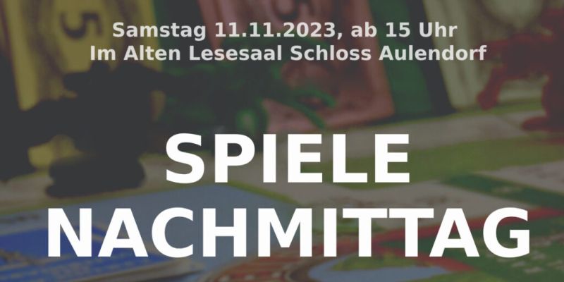 Aulendorf (dbsz) – Der Offene Bürgertreff lädt am Samstag, 11. November, um 15.00 Uhr zum Spielenachmittag im Alten Lesesaal im Schloss ein.