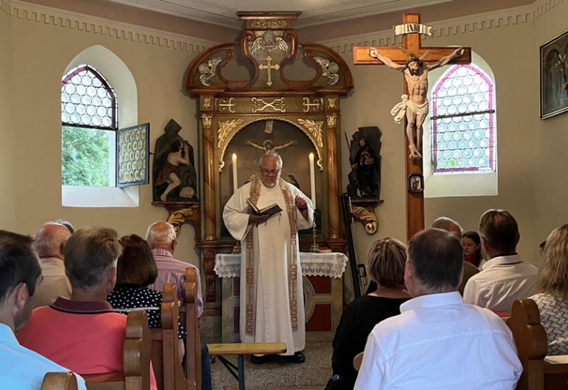 Truschwende – Der Altar, den Anton Mangler im Jahre 1972 gezimmert hat, ist noch derselbe. Sogar das Kunstrosendächle über dem Kruzifix fand wieder seinen angestammten Platz. Die Betreuung aber hat nach weit mehr als einem halben Jahrhundert gewechselt.