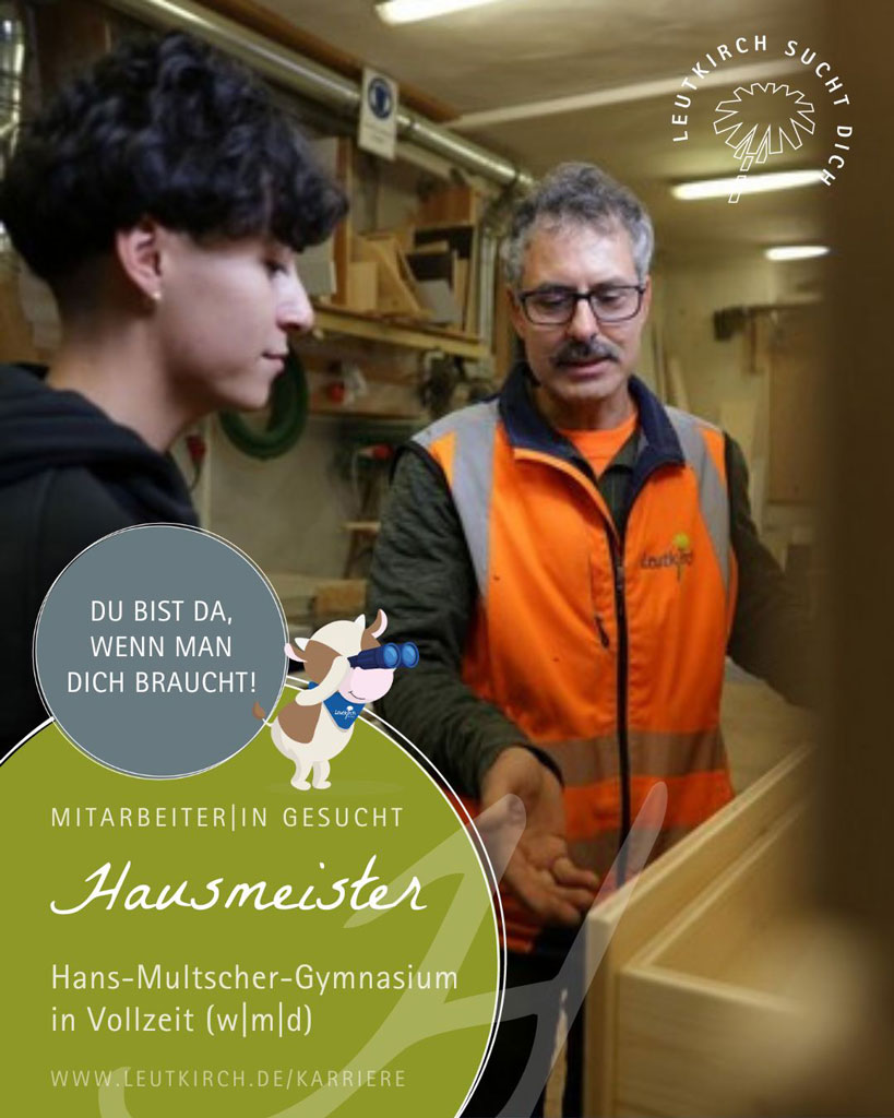 Die Große Kreisstadt Leutkirch im Allgäu (24.000 Einwohner) sucht zum 01.06.2026 eine/n Hausmeister/in für das Hans-Multscher-Gymnasium in Vollzeit (w/m/d).